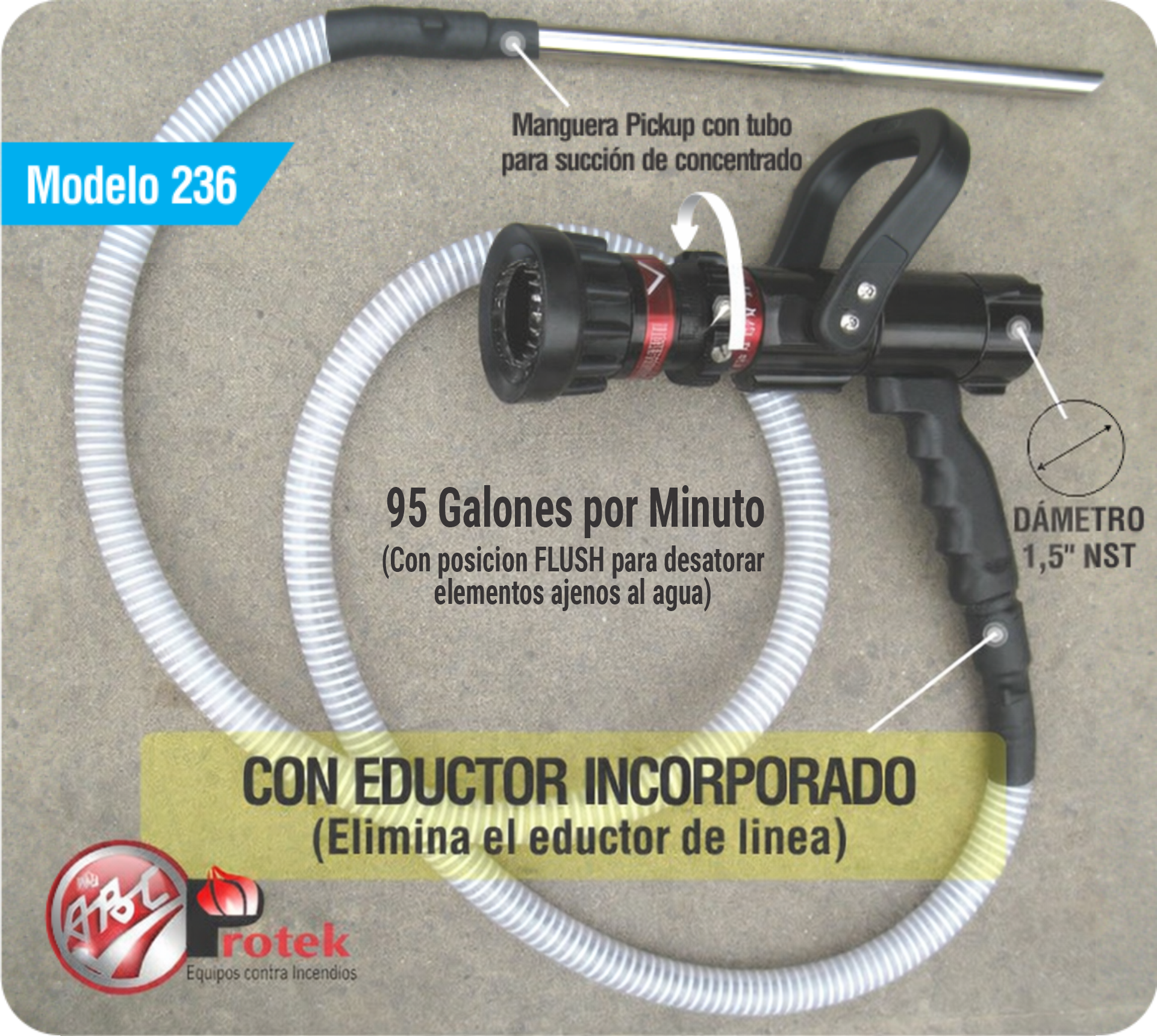 - Adecuado para varios tipos de espuma: espumas AFFF, Clase A y Haz Mat